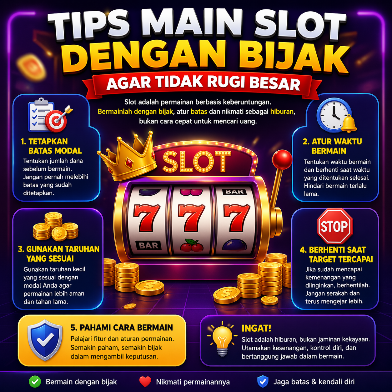 Salah satu tips main slot dengan bijak yang paling efektif adalah menetapkan batas sebelum bermain. Tentukan jumlah dana yang siap digunakan dan jangan pernah melebihi batas tersebut, apa pun hasil yang didapatkan. Selain itu, atur juga waktu bermain agar tidak berlebihan. Disiplin dalam mengelola batas ini membantu pemain menjaga keseimbangan antara hiburan dan tanggung jawab finansial. Dalam konteks Authoritativeness dan Trustworthiness, pendekatan ini menunjukkan bahwa keputusan bermain didasarkan pada kontrol diri dan bukan dorongan impulsif.